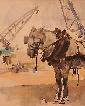 Aldo Raimondi (1902-1998) - Cavalli nel porto di Genova