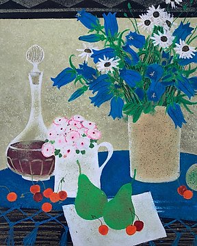 Yves Ganne (1931-2019) - Grande Nature Morte aux multiples bouquets de Fleurs sur une table et carafe (Vendu sans prix de