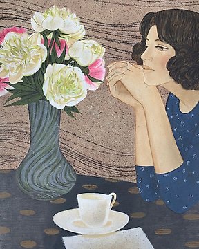 Yves Ganne (1931-2019) - Portrait de femme dans un jardin vu de l’interieur (Vendu sans prix de reserve).