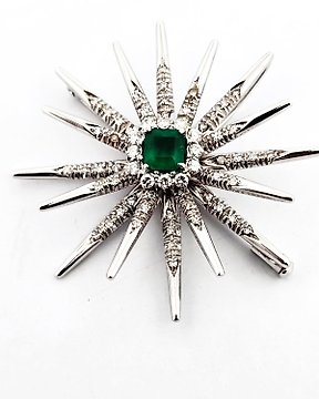 Mikimoto - Rintaneula - 14 kt. Valkokulta Helmi - Timantti