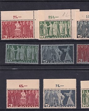Sveitsi 1881 - Faserpapier-kappale erittäin hyvässä kunnossa - ATTEST. - Zumstein Nr. 47 / 48 / 49 / 51 / 52 - Michel Nr. 39 / 40 / 41 / 43 / 44