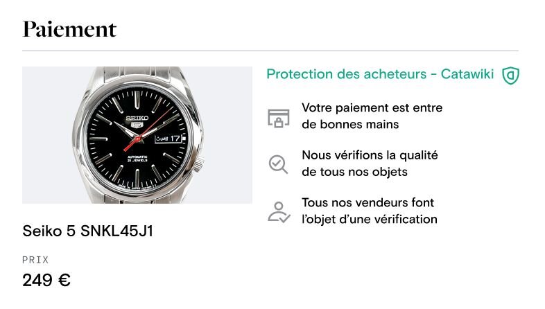 Faites l’acquisition de l’objet. Effectuez votre paiement via notre système de paiement sécurisé. Votre argent sera conservé en sécurité jusqu’à ce que votre objet soit livré à votre domicile.{
