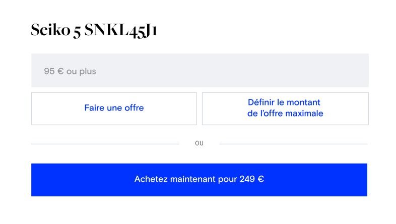 Sélectionnez le bouton « Achat immédiat » parmi les options d’enchères afin d’acquérir immédiatement l’objet. Faites vite ! Cette option disparaît 24 heures avant la clôture de la vente.