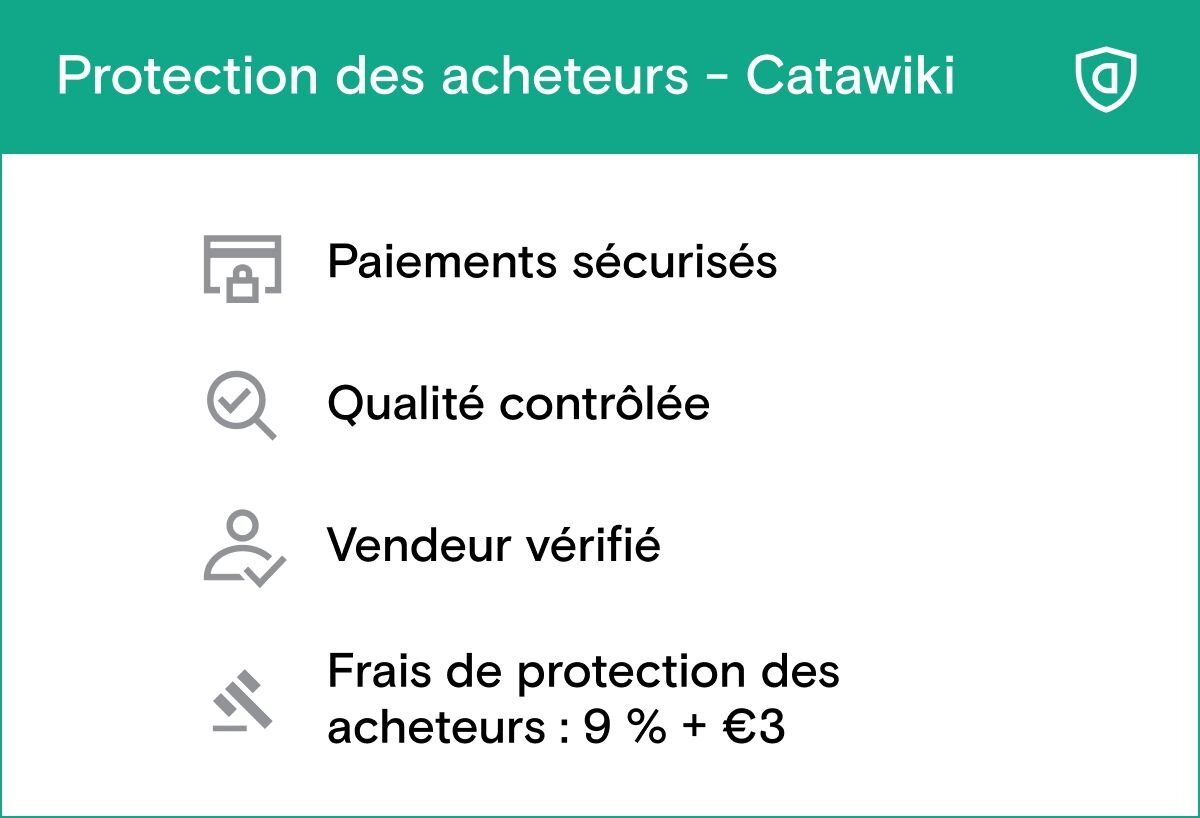 Votre confiance est notre bien le plus précieux - et c’est pour la mériter que nous travaillons dur chaque jour. Sur Catawiki, vous pouvez enchérir en toute confiance, en sachant que tous les objets présentés sont vraiment exceptionnels et que vos paiements sont totalement en sécurité. En cas de besoin, nous serons toujours là pour vous aider.