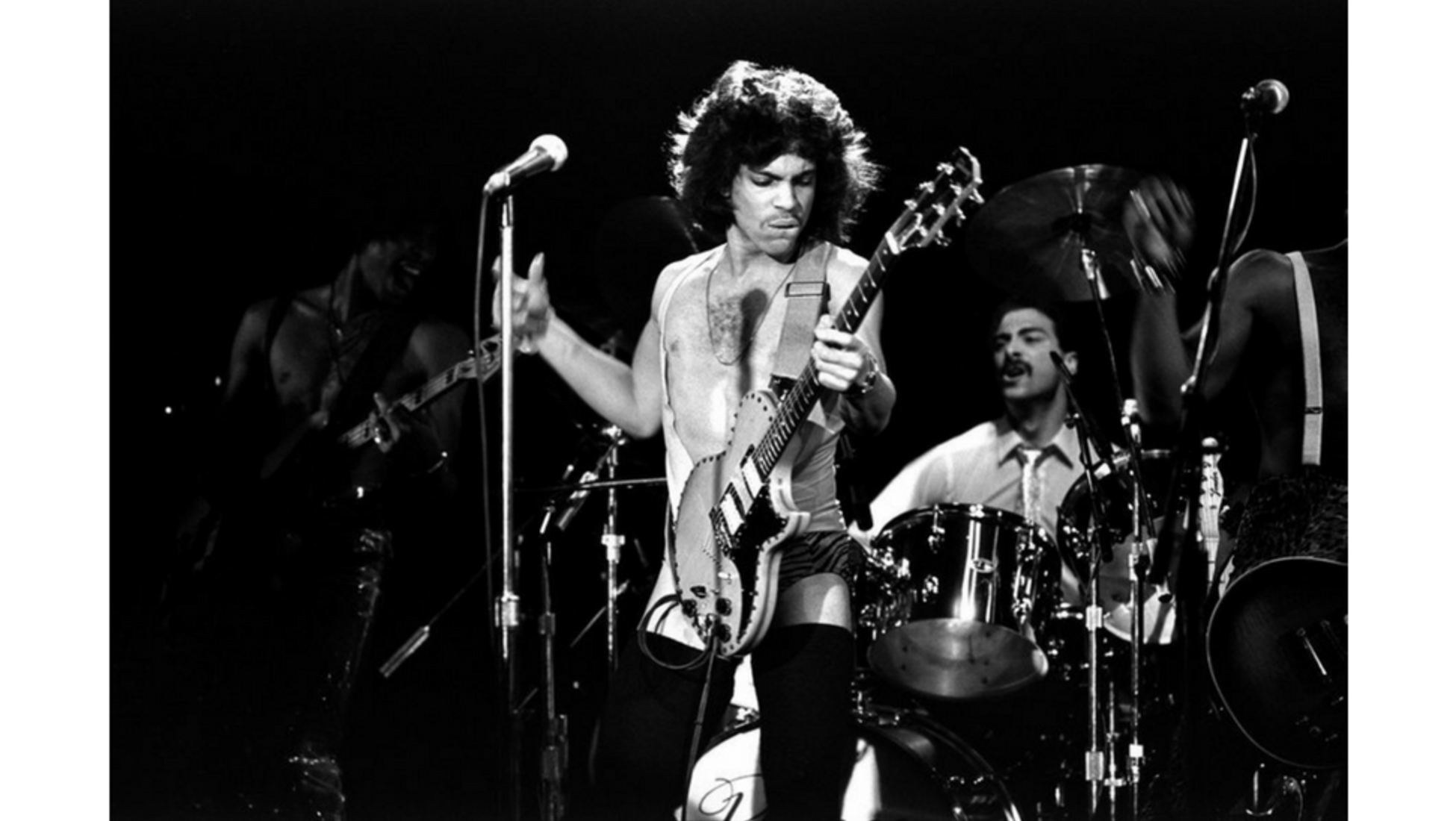 Prince n’avait pas peur de montrer son corps, comme en témoigne ce short imprimé zèbre et sa chemise déchirée.
