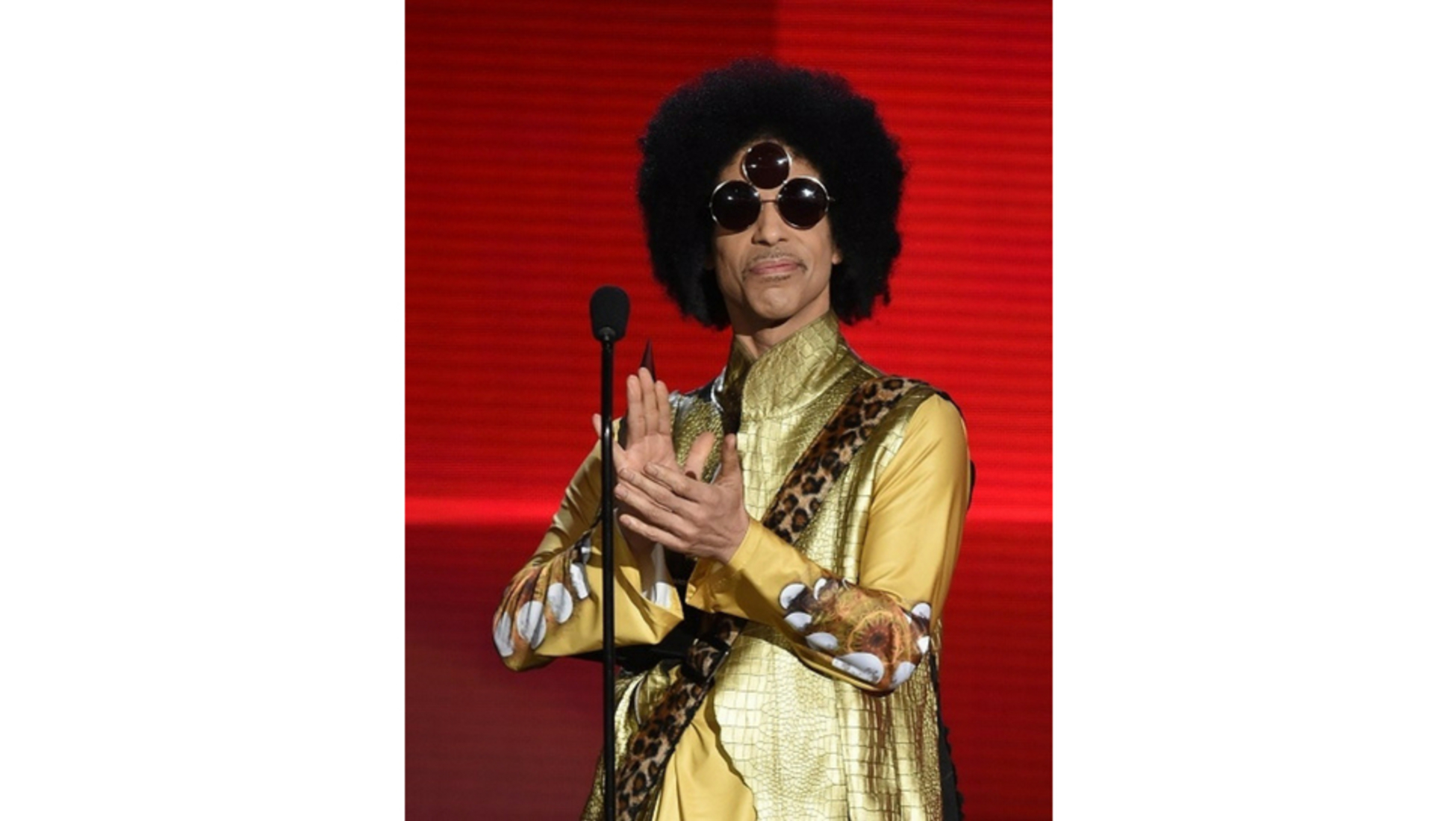 Prince porta ces lunettes un tantinet extravagantes, tout en tenant un discours lors des American Music Awards, en 2015. Le troisième œil, non ?