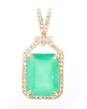 Sans Prix de Réserve - Pendentif - 14 carats Or jaune - 3.54ct. tw. Émeraude - Diamant