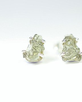 2 boucles d'oreilles en Moldavite / brut / neuf 925 argent sterling - 1.34 g - (2)