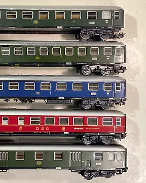 Märklin H0 - 4000/4002/4003 - Wagon de passagers pour trains miniatures (9) - 9x Donderbussen, voitures de chemin de fer pour ligne locale avec feu de fermeture - DB