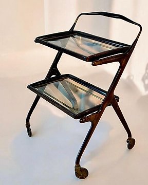 Chariot de service - Laiton doré, Bakélite, Formica, Palissandre