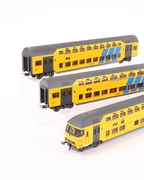 Lima H0 - Ensemble de wagons de passagers pour trains miniatures (1) - Ensemble en trois parties de wagons à double étage type DDM-1 'Panda' - NS