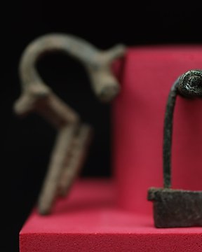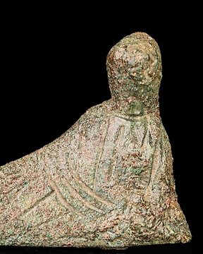 Kelta Bronz Ritka áldozati figurális amulett szakállas álló férfi istenséggel, csőrrel ellátott orral.