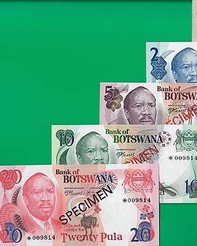 Botswana. - 1, 2, 5, 10, 20 Pula ND (1979) - Collector Specimen set w/ matching serial - Pick CS1 (1, 2, 3, 4a, 5a) (Nincs minimálár)