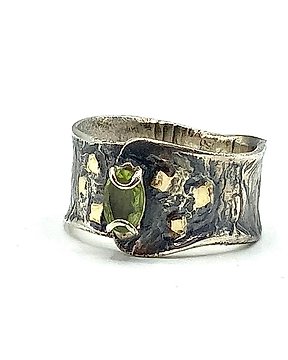 Nincs minimálár - Gyűrű - 9 Kt Sárga arany, Ezüst Peridot - Smaragd
