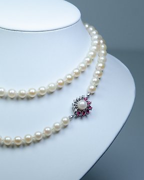 Nincs minimálár - Nyaklánc 14 karátos fehérarany - tenyésztett gyöngyök - Millegriffes