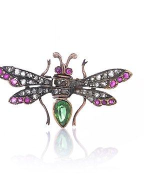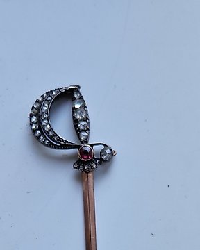 Nincs minimálár - Bross - 19,2 kt. Rózsa arany, Ezüst Gyöngy - Gyémánt