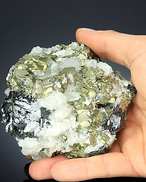 Kivételes tetraedrit szfalerittel, piritettel, kvarccal és kalkittel a Trepča Stari Trg bánya Mintadarab - Magasság: 9 cm - Szélesség: 11 cm- 1280 g