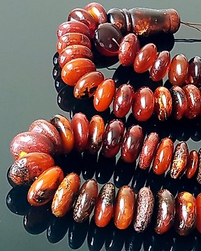 Sötétkék borostyán darab, félig áttetsző. Teljesen polírozott - Magasság: 100 mm - Szélesség: 80 mm- 506 g