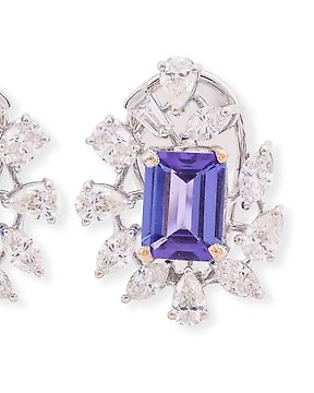 Nincs minimálár - Statement fülbevaló - 18 kt. Fehér arany Rubin - Gyémánt