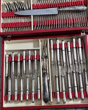 Christofle / Maison Cardeilhac bestekcassette - model Godrons - Evőeszközkészlet (40) - .950 ezüst