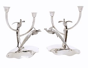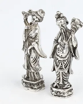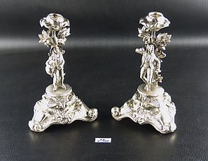 Willem van Strant, Amsterdam (1727-1742) - Figura in miniatura - Kandelaars (2) - .835 argento