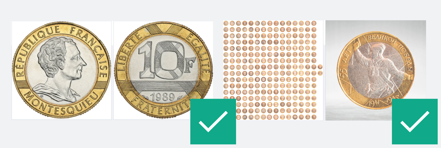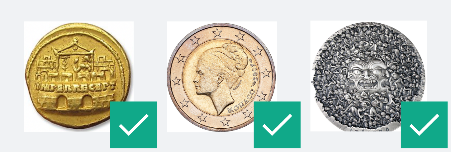 - Per monete o banconote singole, le immagini devono essere centrate, con la moneta o banconota che occupa preferibilmente almeno l'80% dell'inquadratura.