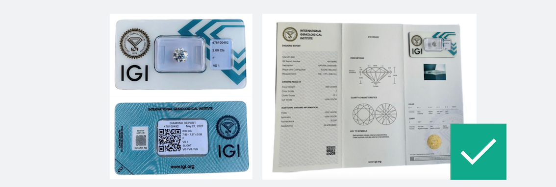 “Diamante naturale certificato IGI.