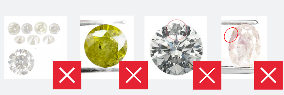 - Diamanti con inclusioni che rompono la superficie o opacità estrema