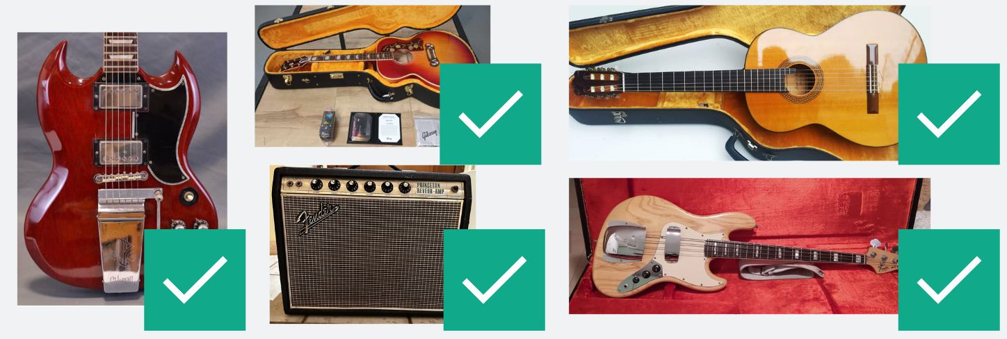 - Chitarre elettriche e bassi: retro della paletta (per numero di serie/accordatori), primi piani dell'usura dei tasti (primi 5 tasti), tallone/tasca del manico (se separato) e codici elettronici/potenziometri (se aperti).