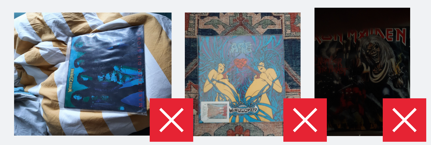 - Immagini mal inquadrate, dove è catturata un'area inutilmente più ampia rispetto alla copertina del vinile