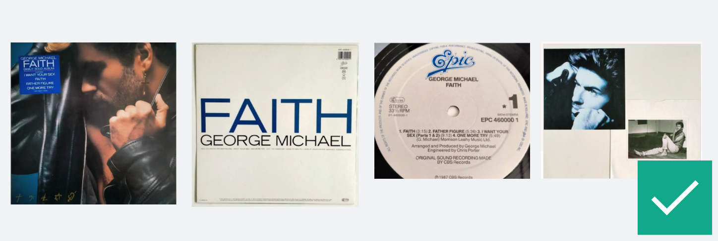 Quando offri oggetti per le aste di vinili, assicurati di avere uno sfondo neutro che dia immagini chiare e a fuoco nell'ordine seguente: