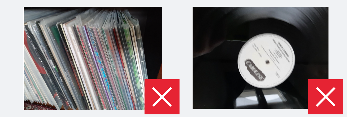 - Queste foto sono inefficaci perché non permettono agli acquirenti di valutare correttamente il vinile: