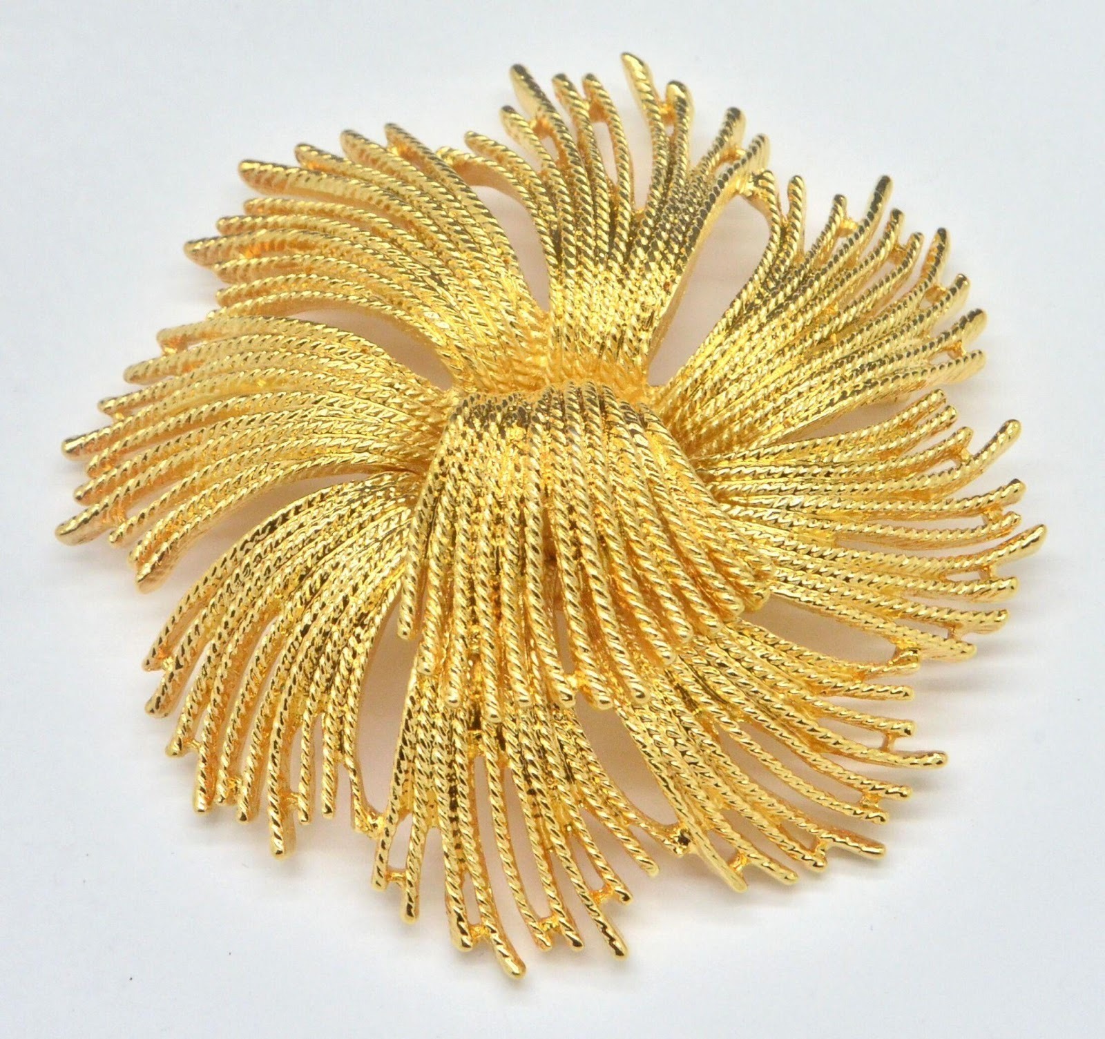 (Da sinistra a destra: Spilla Cartier in oro bianco 18 kt, spilla vintage Monet dorata)