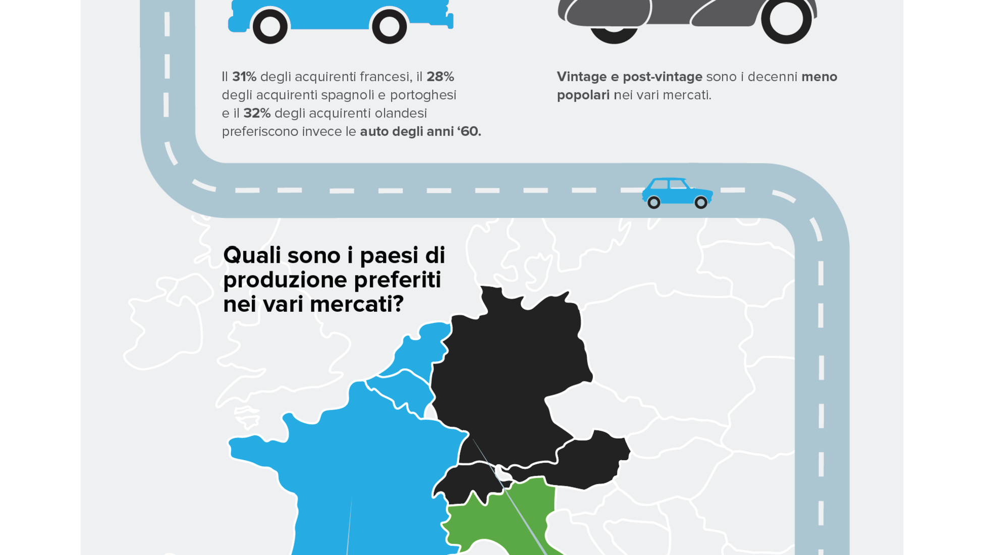 Il mercato delle auto d'epoca è in forte espansione in Europa con tanti appassionati di modelli classici Volkswagen, Fiat e Mercedes. Abbiamo analizzato i nostri dati interni e creato un'infografica sulle tendenze del mercato delle auto d'epoca nel 2019 per scoprire quale marca e modello di auto classica è la preferita in Europa, chi acquista e da dove, e infine quale decennio è il più popolare per mercato.