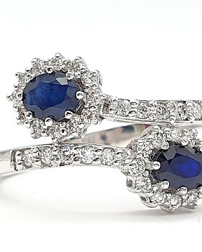 Anello - 14 carati Oro giallo Zaffiro - Diamante