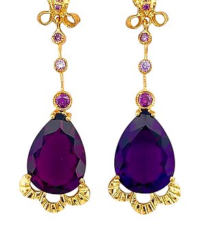 Senza Prezzo di Riserva - Orecchini - 9 kt Oro giallo, Argento Ametista - Rubino