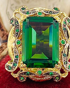 Senza Prezzo di Riserva - Anello - 9 kt Argento, Oro giallo Smeraldo - Diamante