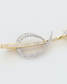 Spilla - 18 carati Oro giallo, Oro bianco Diamante (Naturale) - Perla