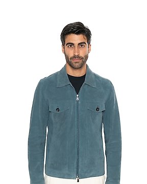 RRP 4200€ ISAIA NAPOLI "Capri" Dusty Blue Zip Jacket Leather Suede Lambskin - 52 IT - Giacca - Nuovo con etichette