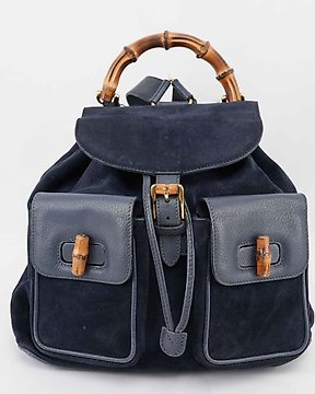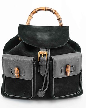 Gucci - Gucci Black Suede & Leather Bamboo Handle Backpack – Made in Italy - Zaino
