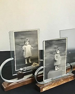 Portaritratti (5) - Supporti fotografici in legno in stile art deco, rifiniti con ottone, cromo e metallo.