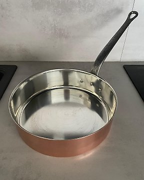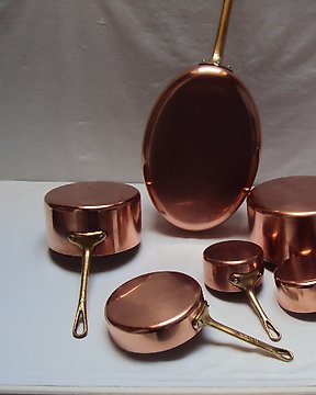 Lot exceptionnel cinq casseroles Métaux ouvrées professionnelle très épais ( int. INOX) - Casseruola - Rame, Ferro, acciaio inossidabile