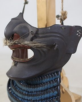 Mengu/Menpō - Giappone - Kurourushinuri Menpo con Kiritsuke Kozane Mendare, armatura da samurai : E2-991 Periodo Edo (1600-1868)