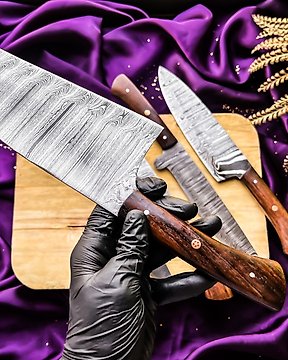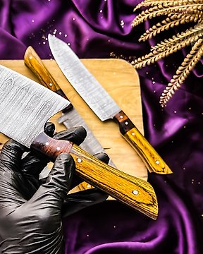 Coltello da cucina - Chef's knife - Acciaio, Legno, Pelle - Sconosciuto