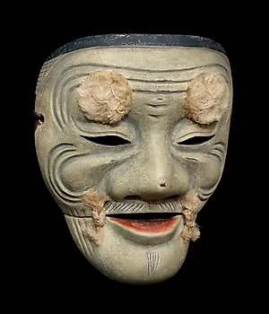 Maschera Noh - Maschera Noh in legno giapponese firmata "Tangetsu (探月)" di KOOMOTE 能面 小面 (con sacco e scatola per