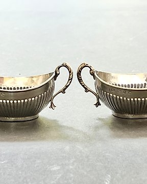 Saliera e pepiera (2) - Due teglie di spezie in argento con vetri blu cobalto all'interno, stile Louis Seize. - .925 argento - Due contenitori di argento per spezie.