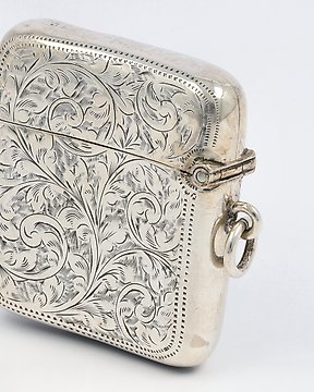 No reserve-Handgemaakte 19e eeuwse zilveren Tondeldoos/Vesta case met geëmailleerde voorzijde - John Millward Banks Chester 1898 - Portafiammiferi - .925 argento