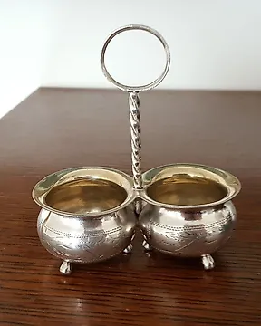No reserve- Groot geslepen kristallen Zoutvat met zilveren vissenstaart met Zeemeermin - Saliera (2) - Argento, Cristallo - Con cucchiaino da sale in argento