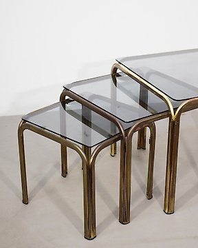 Tavolino da caffè - Ottone, Vetro - Attribuito a Hans Kögl - Pile di grano legate con sopra un piano di vetro.