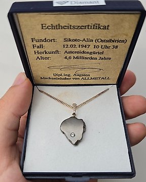 Ciondolo meteorite Sikhote-Alin. Lucidato con inclusione di diamanti. SENZA riserva!! - 4.5 g